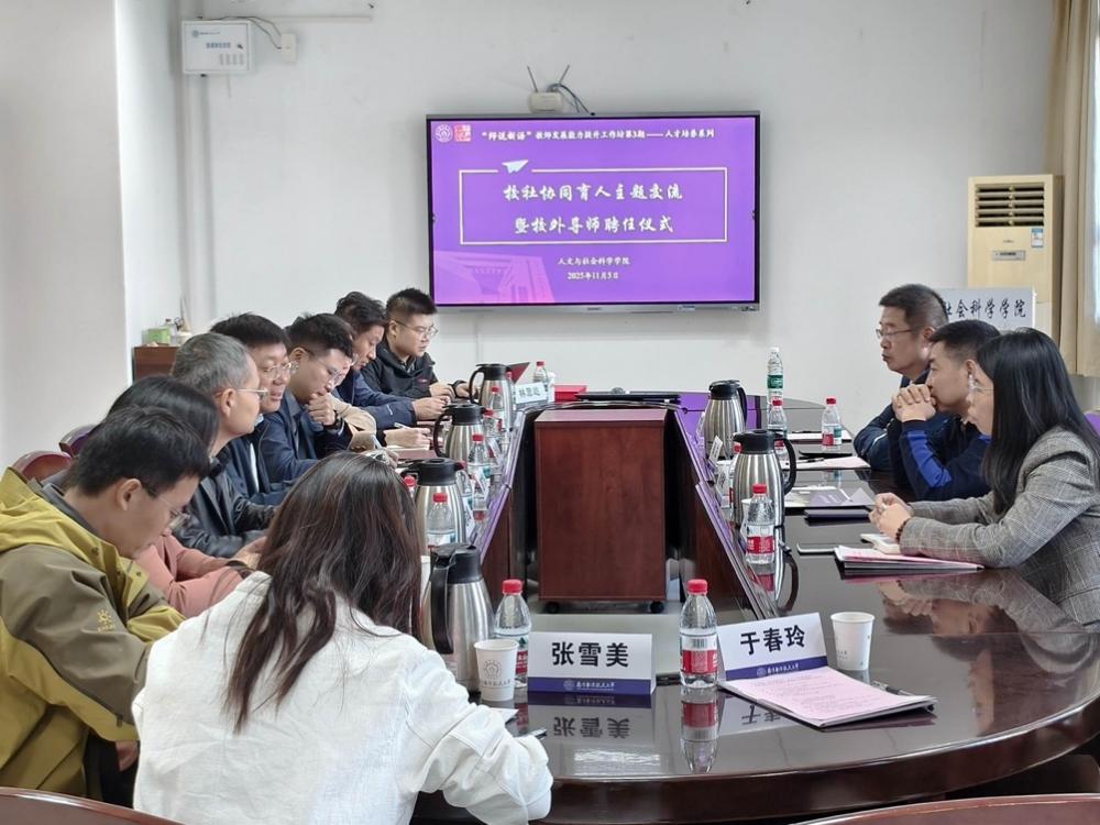 11月5日上午,“师说新语”人才培养系列之校社协同育人主题交流暨校外导师聘任仪式在学院312会议室顺利举行。院党委书记楚广兴、副院长武小龙、校社协同育人中心负责人施向峰及公共管理系师生代表参会,会议由公共管理系主任王媛主持。