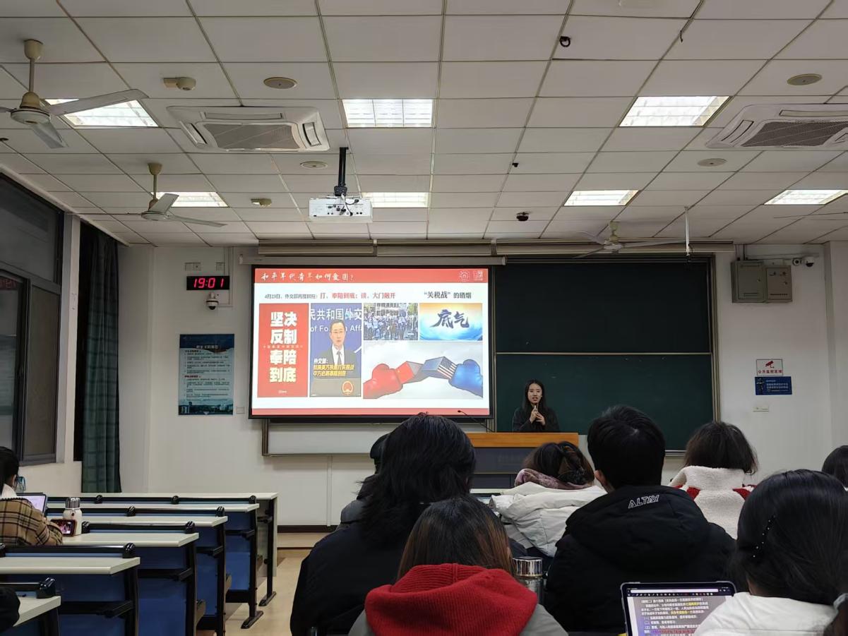 12月3日,成人黄色直播网站 在将军路校区D3107教室开展第306期公开月讲评。本次讲评以“和平年代青年如何爱国——从张伯苓‘爱国三问’开始谈起”为主题,由本科生辅导员聂小芳主讲,2023级全体本科生参与。